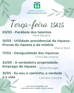 Confira abaixo os temas e expositores das doutrinárias deste mês. (expositor e tema estão sujeitos a alterações)